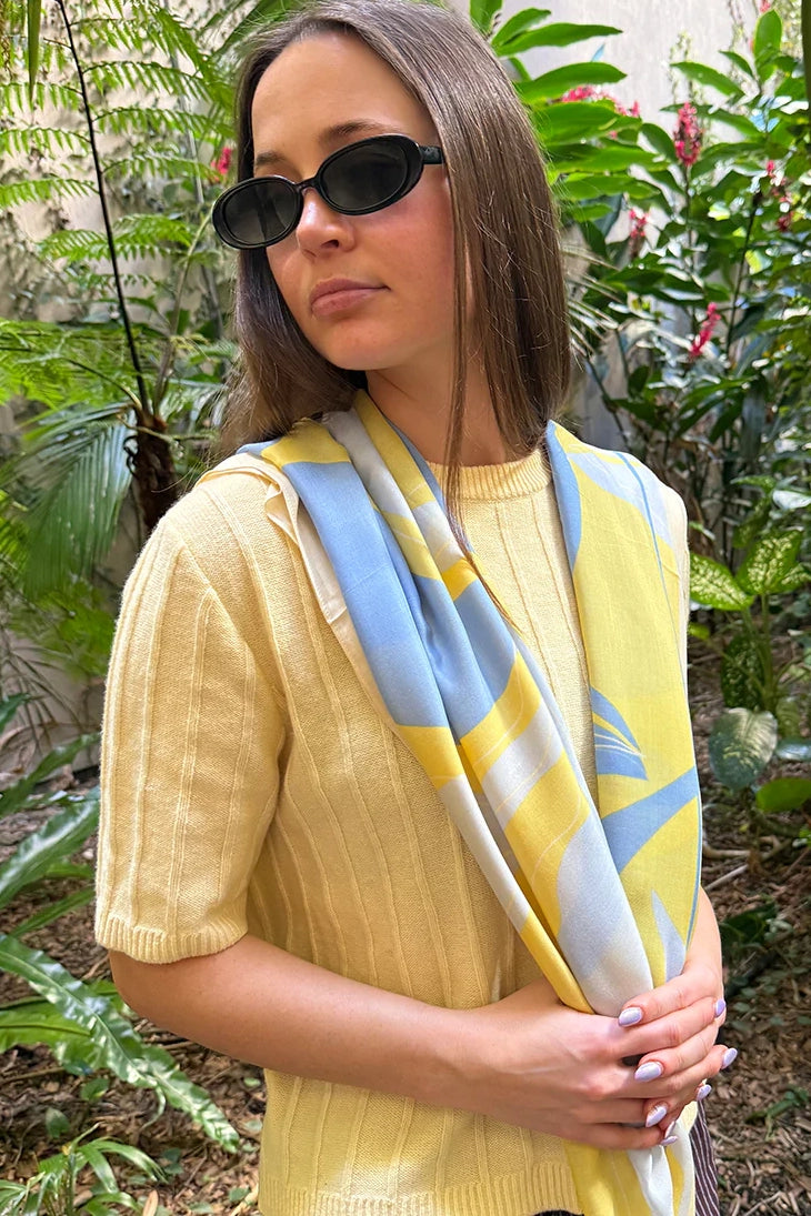The Pannett Cashmere Modal Scarf, Yellow Blue