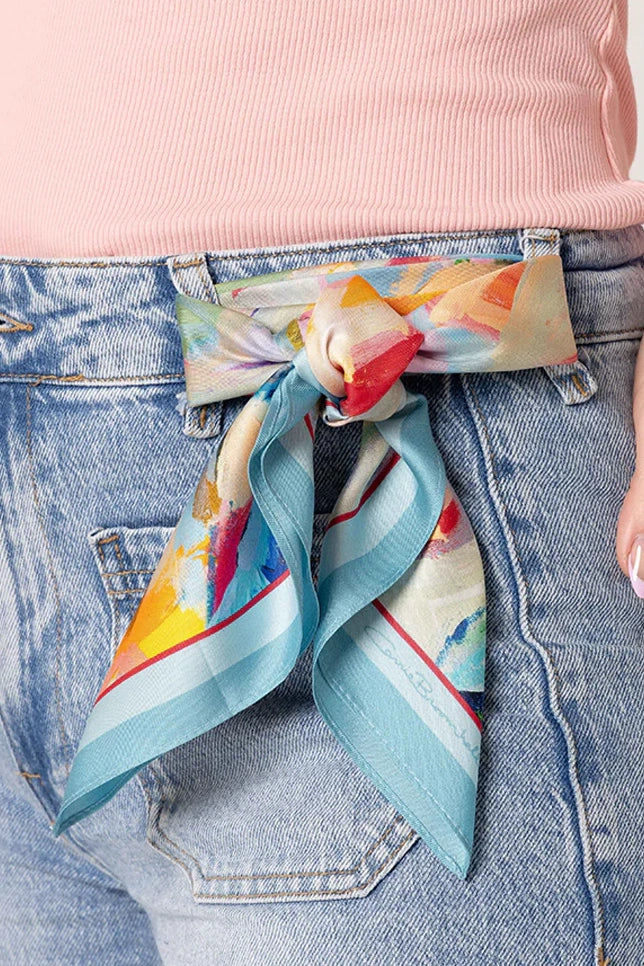 Have fun with the versatile styling options - tied at the neck, worn in the hair or wrapped around your bag!