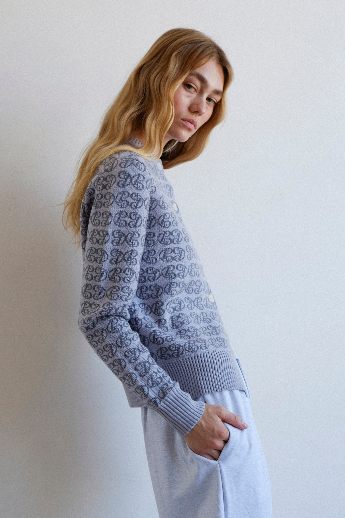 CPD Monogram Cardigan in Sky/Navy by New Zealand label COMMONPLACE.