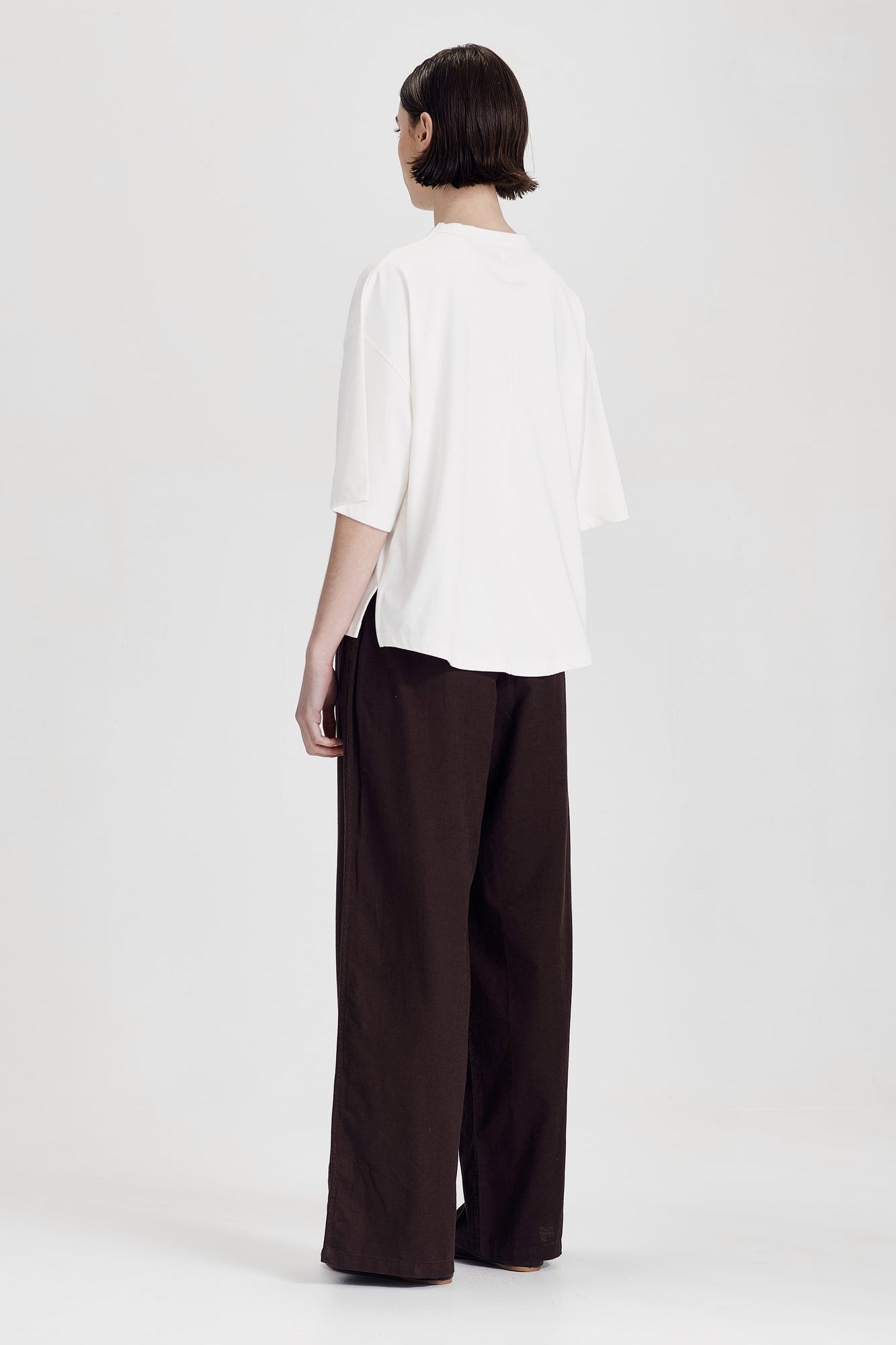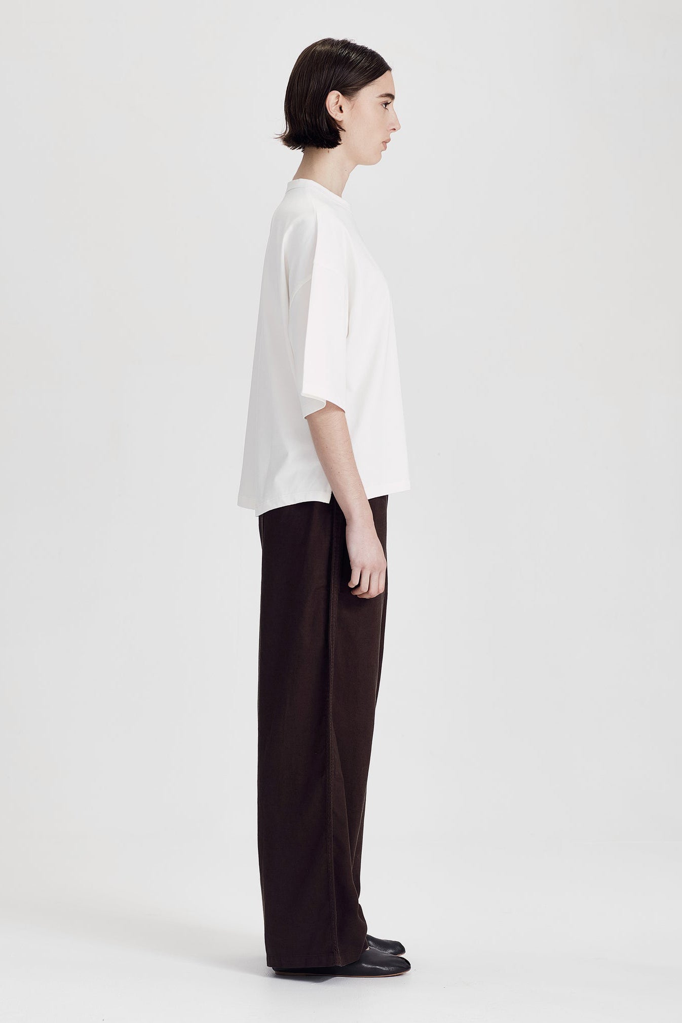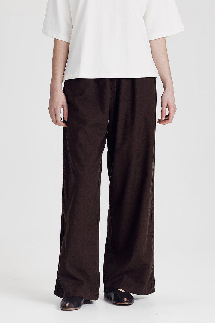 Linen Blend Pull-On Pant in Cocoa Linen by New Zealand brand COMMONERS