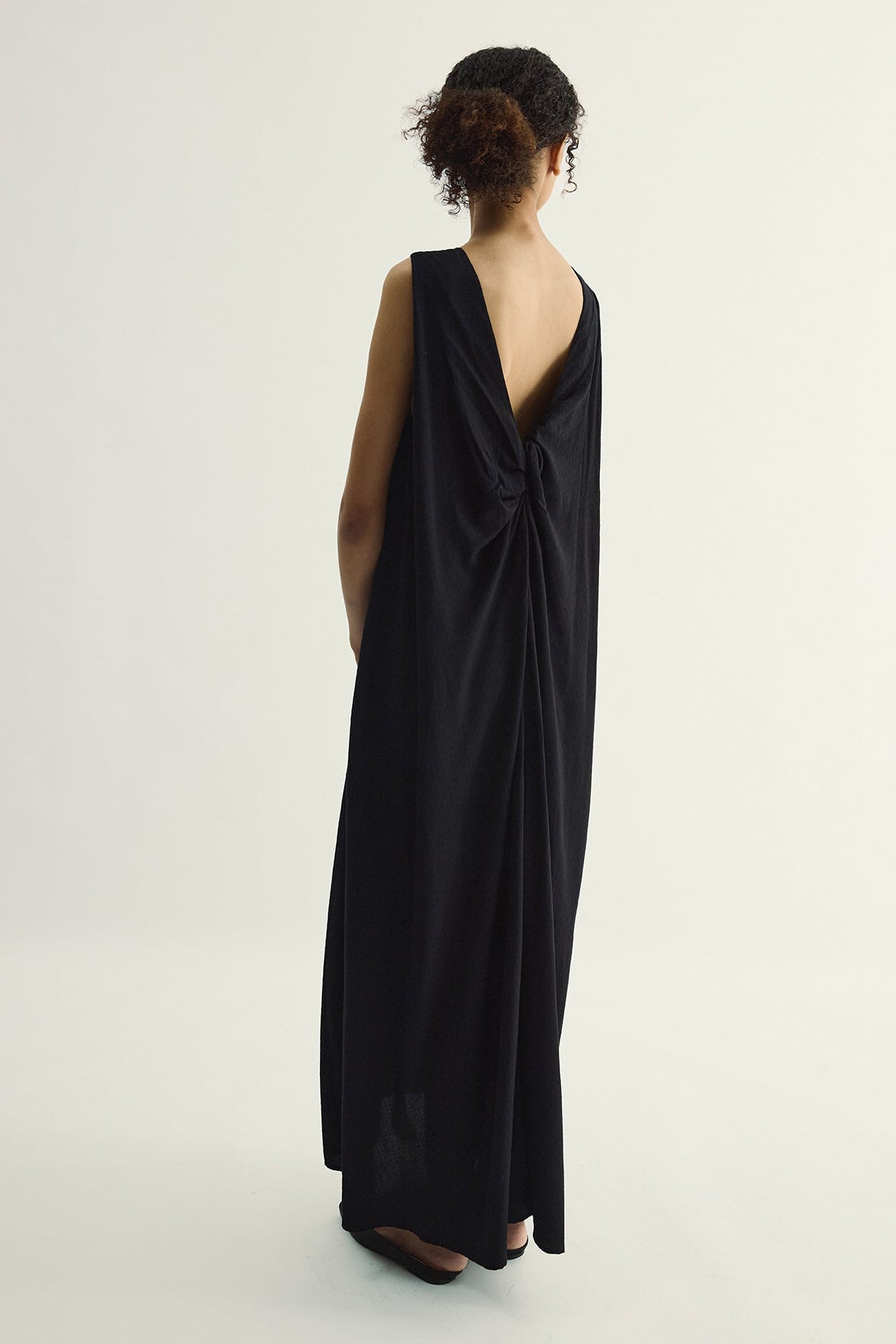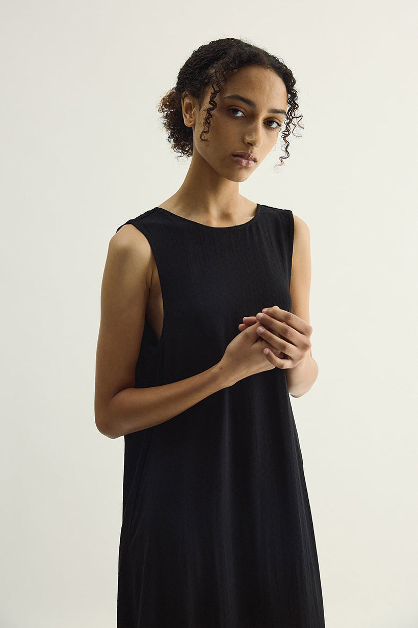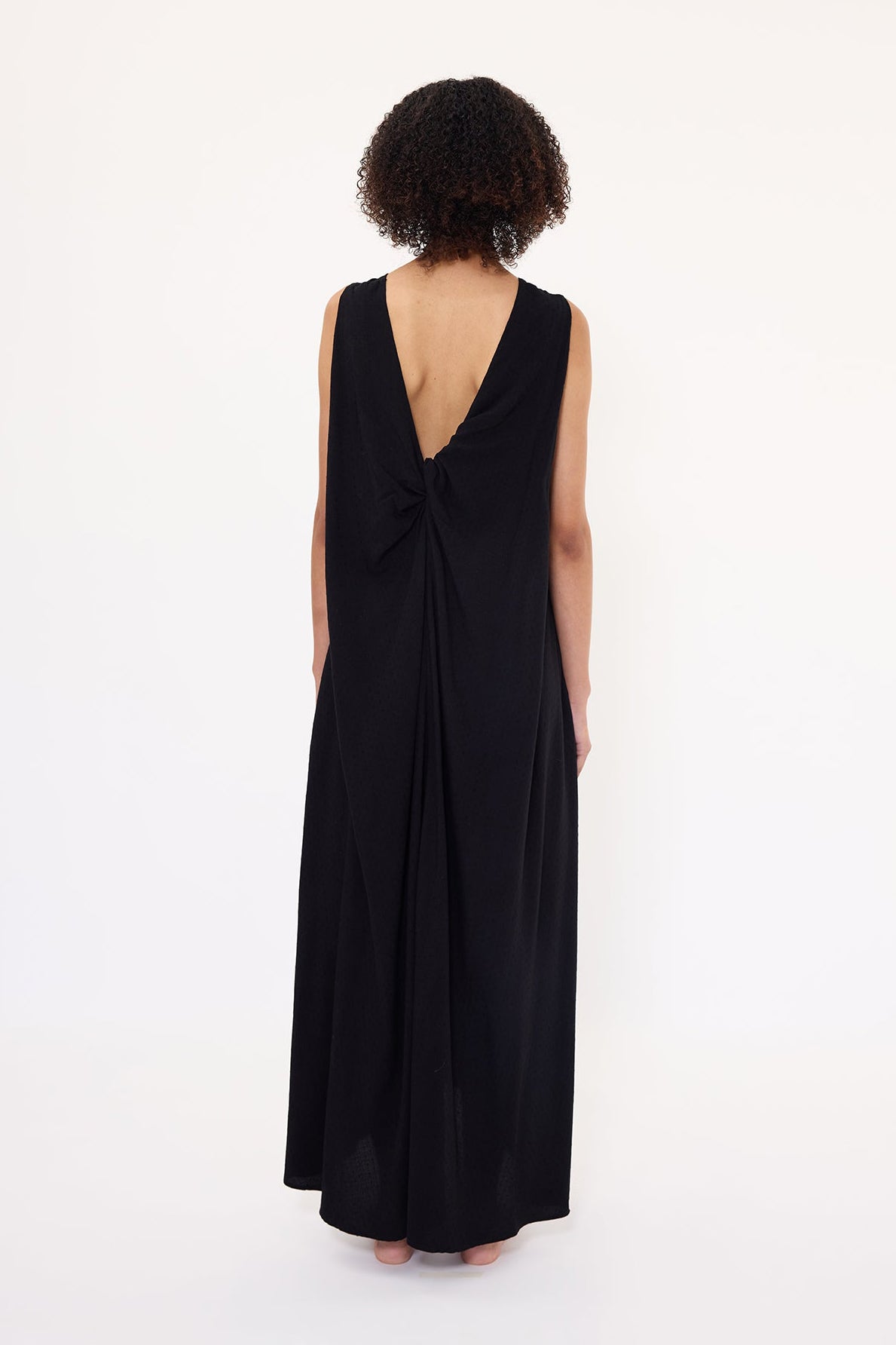 The Bobby Dress is cut in a fluid 100% viscose that moves effortlessly with you. A high front neckline contrasts with the open, twisted panel back - creating an unexpected detail. Side seam pockets provide quiet practicality.