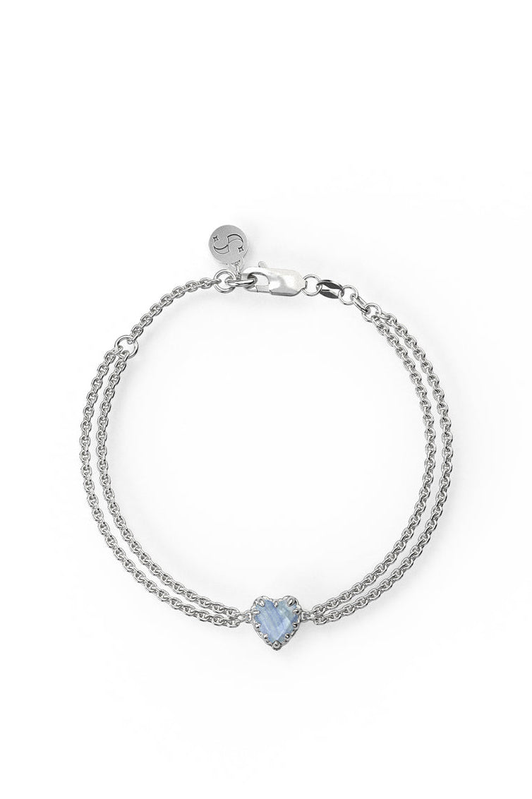 Love Claw Bracelet, crafted in high-polish sterling silver. Fine double chains are met with a 'Blue Lace Agate' stone setting. Signature checkerboard-cut creates a captivating play of light on its facets.