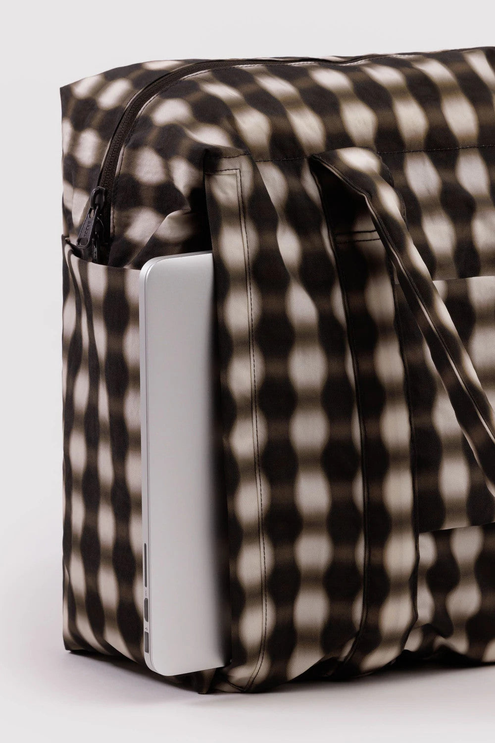 Baggu Cloud Carry-On in Blurred Gingham Brown by US label BAGGU.