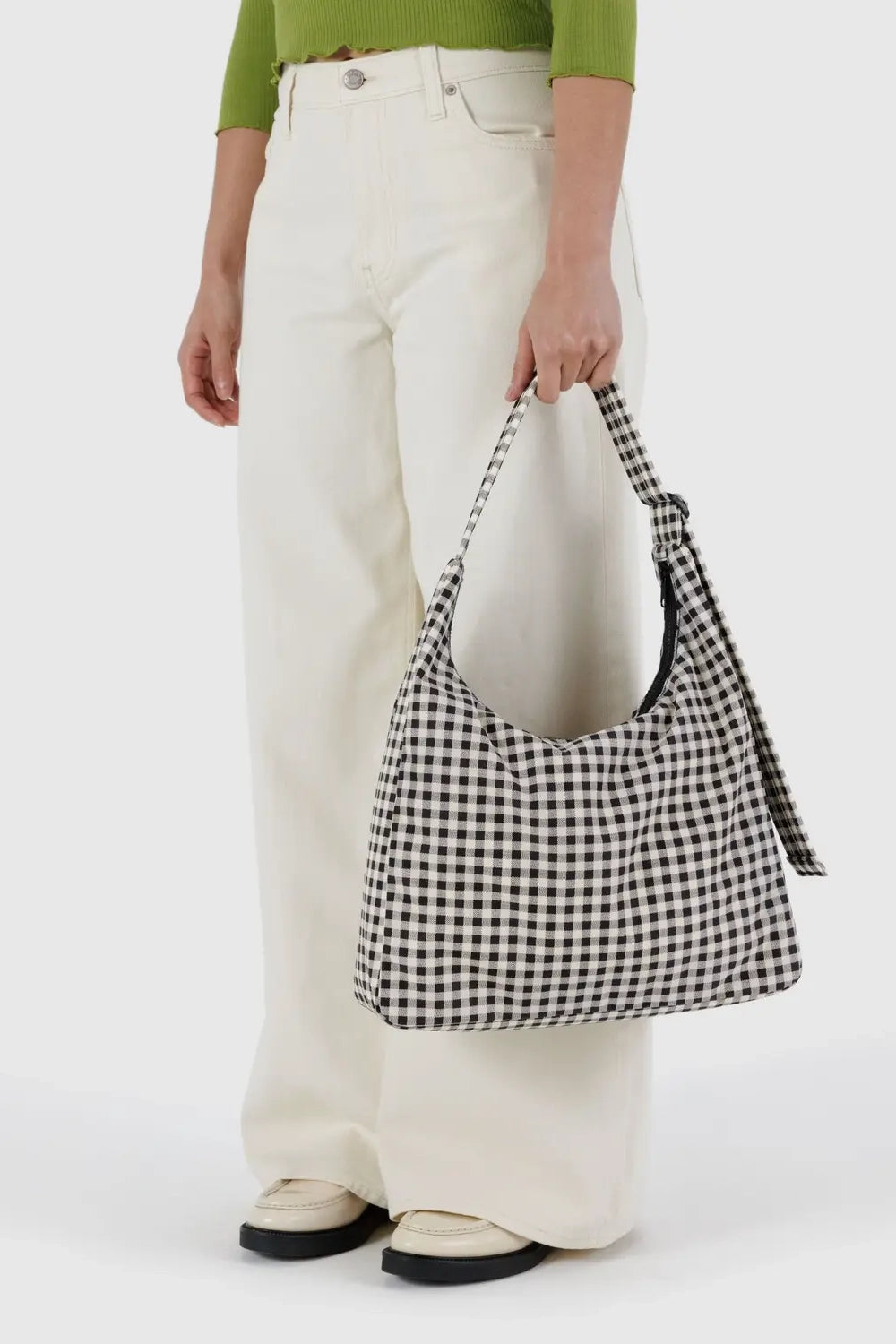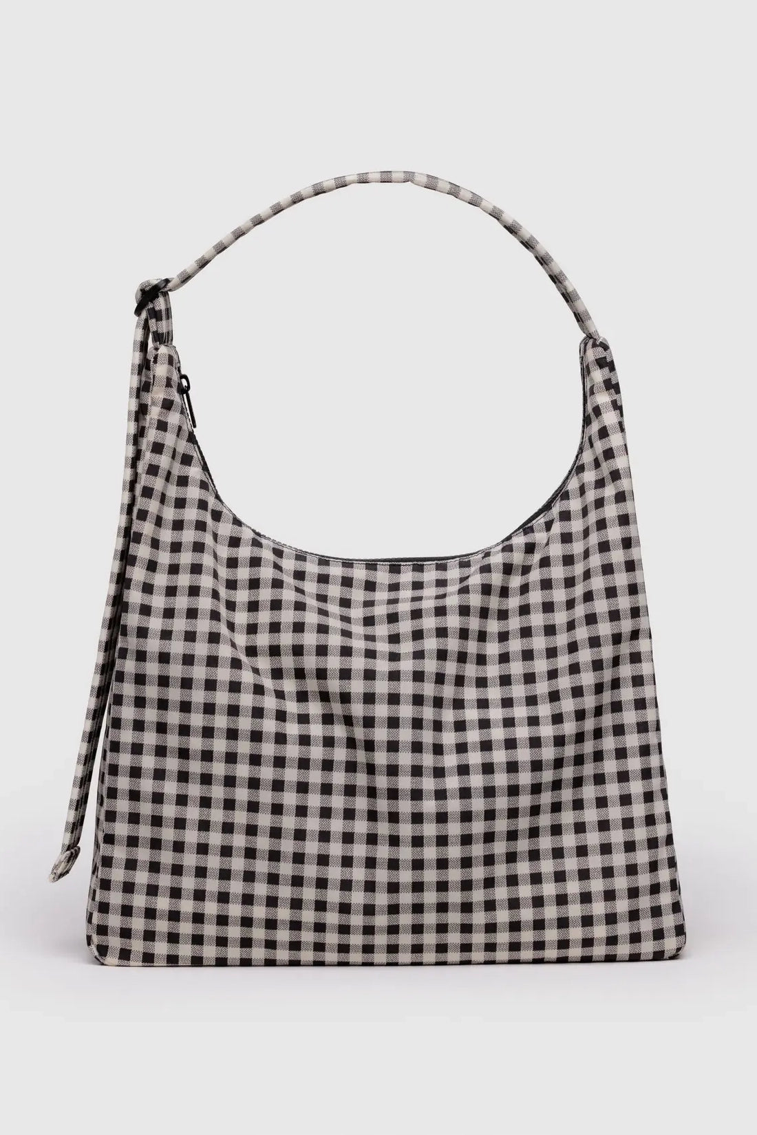 Nylon Shoulder Bag in Black White Gingham by US-based label BAGGU.