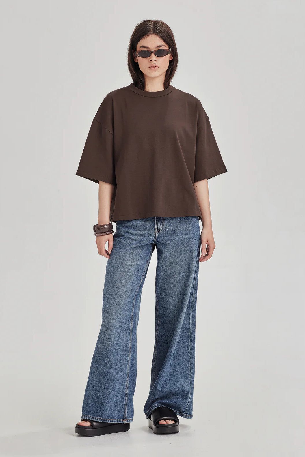 Womens Heavy Boxy Tee in Cocoa by New Zealand brand COMMONERS