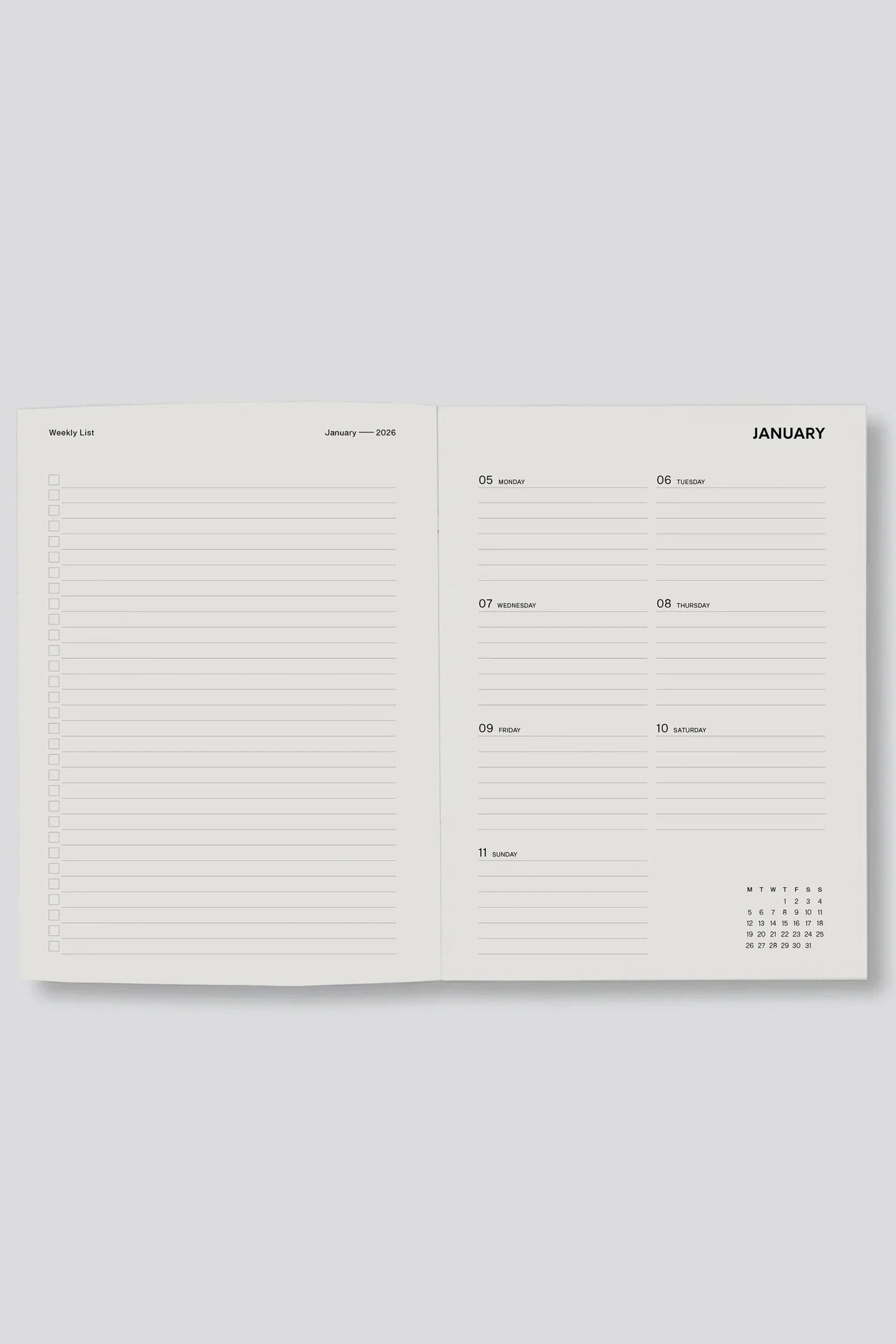 • Monthly double page planner