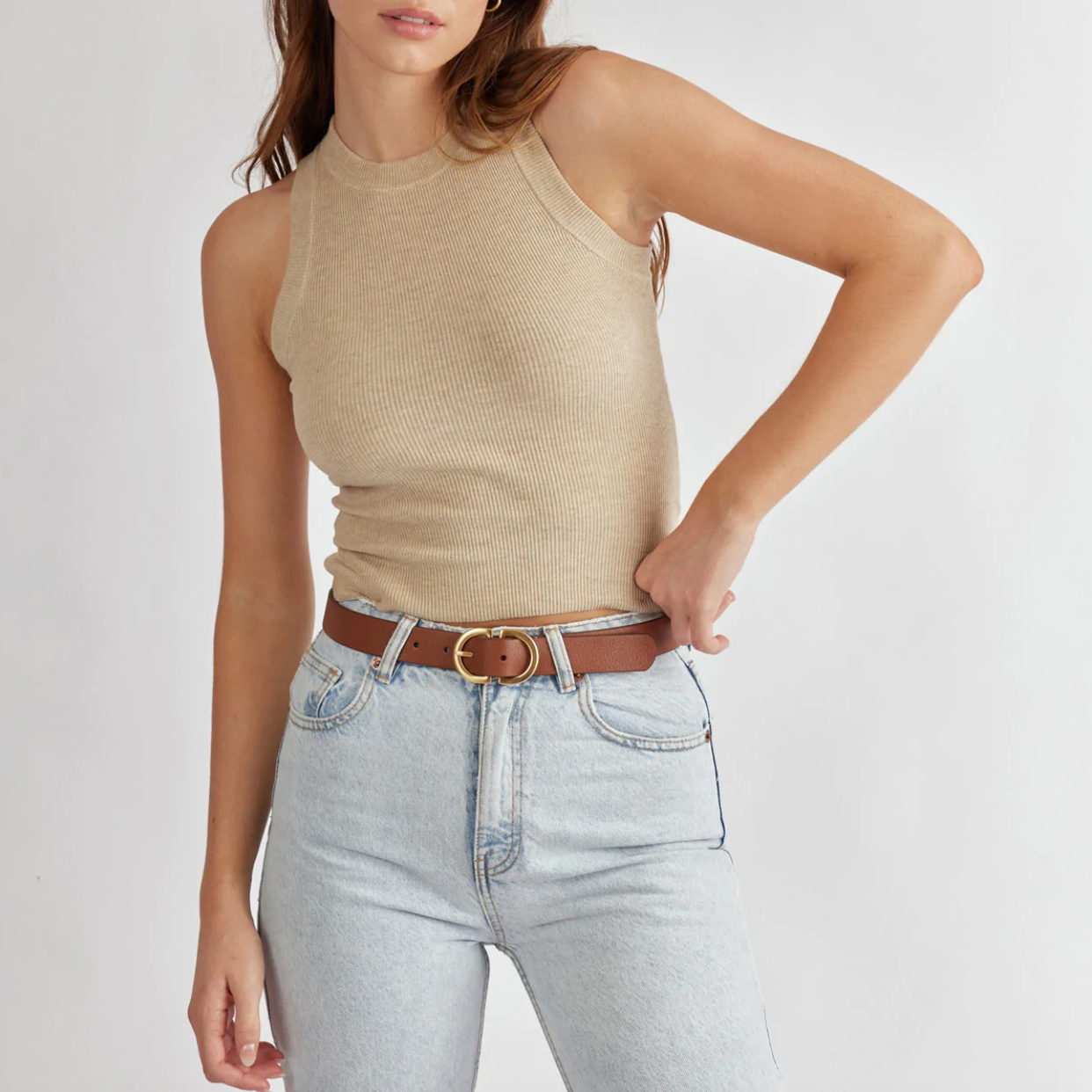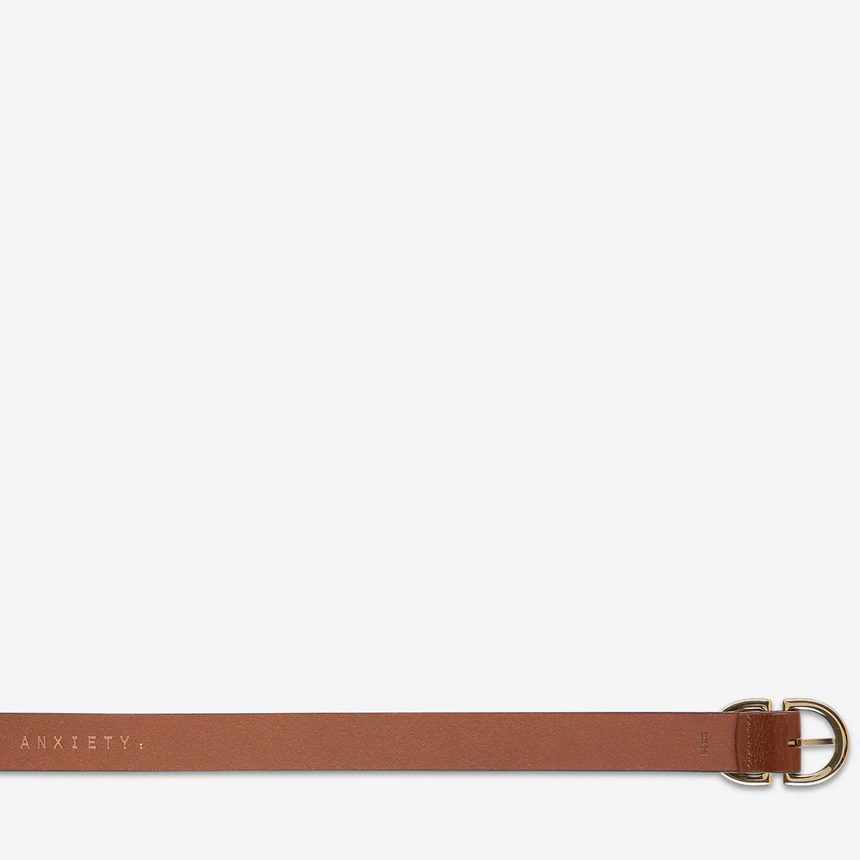 In Reverse Belt in Tan/Gold by Australian brand STATUS ANXIETY