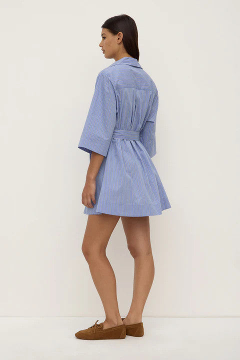 Erina Stripe Mini Shirt Dress in Blue & White Stipe by Australian designer ASSEMBLY LABEL