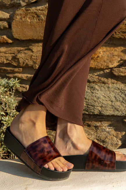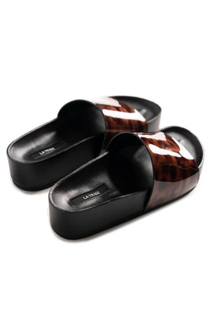 Platform Slide Animal in Animal/Black by New Zealand footwear designer LA TRIBE