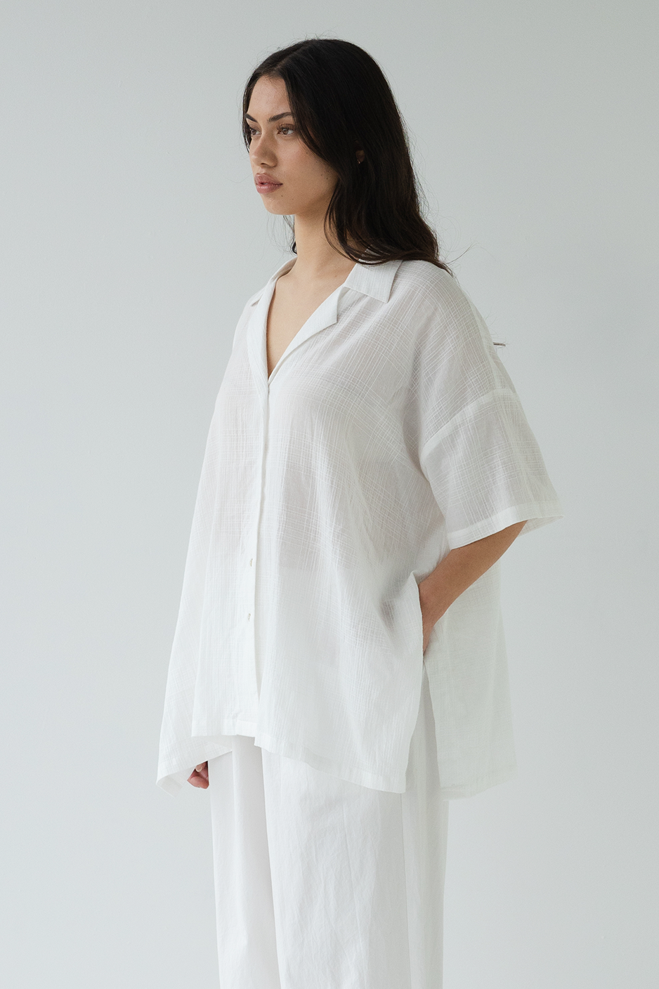 Easy wear shirt, on & off the beach. Wear with swim, cotton pants or denim.