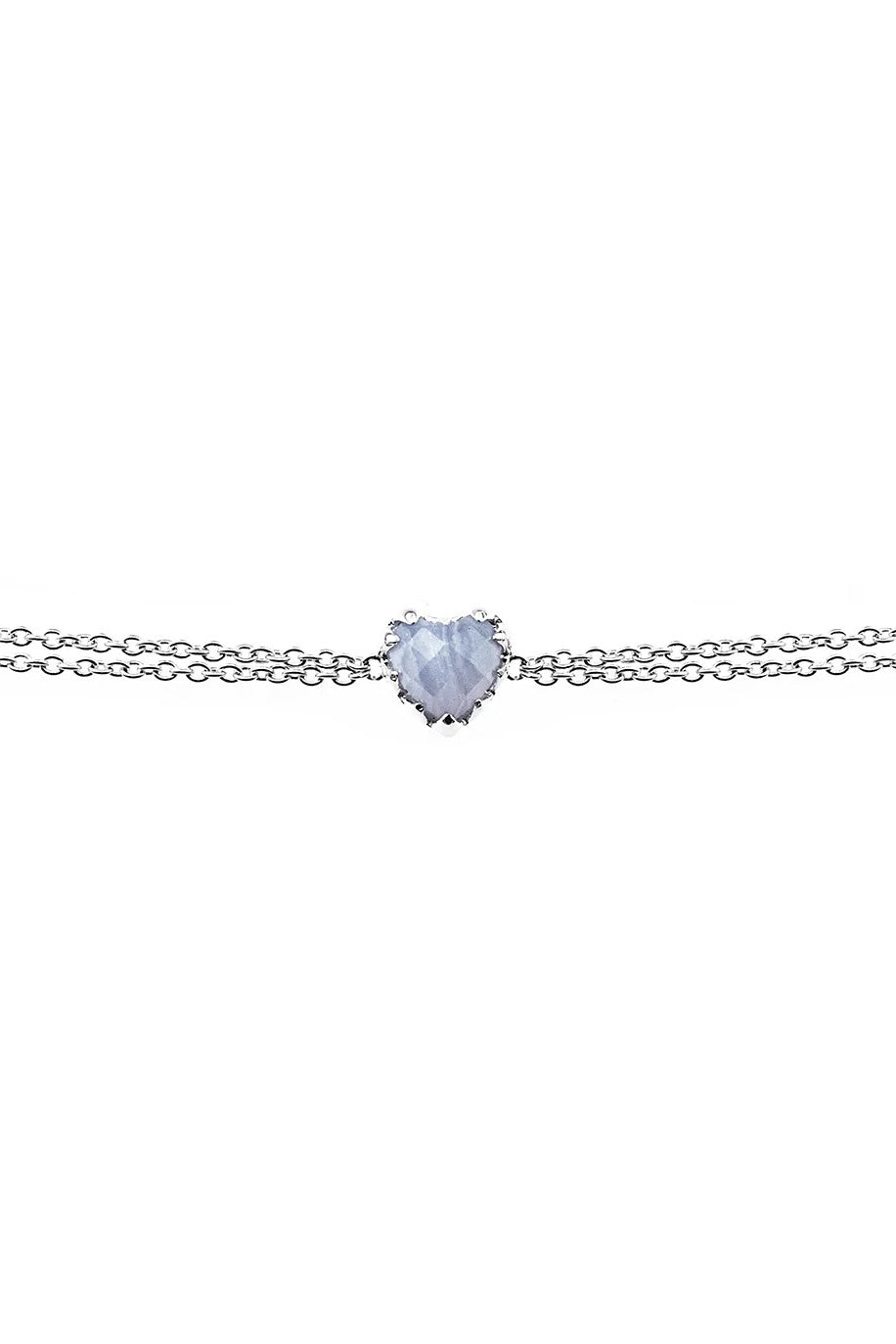 - Heart-shaped natural Blue Lace Agate stone in a claw setting