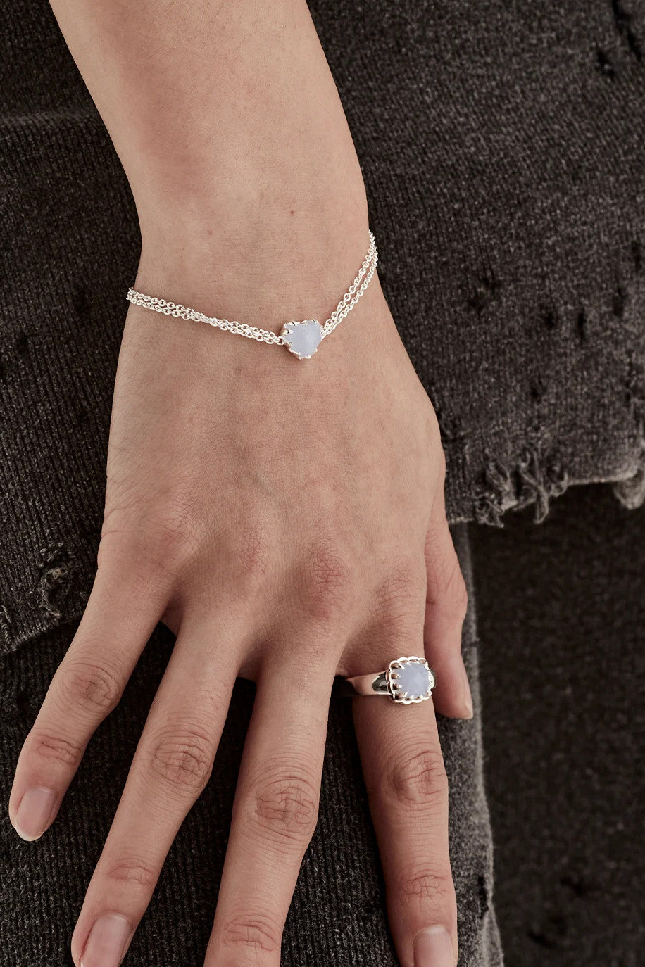 Love Claw Bracelet, Blue Lace Agate / Sterling Silver