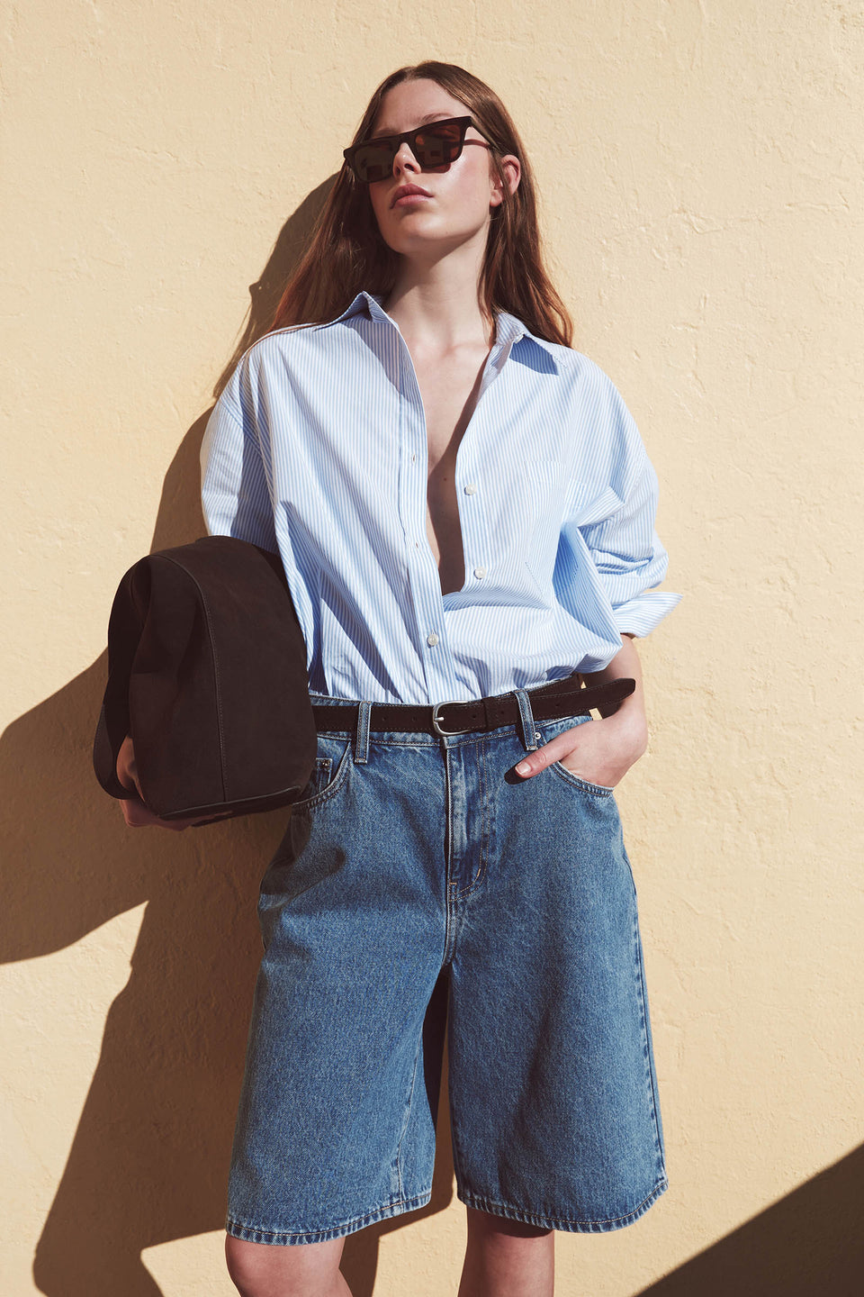 Knee-length denim shorts crafted from a midweight cotton. Designed to sit mid-rise, they offer a relaxed fit through the leg.
