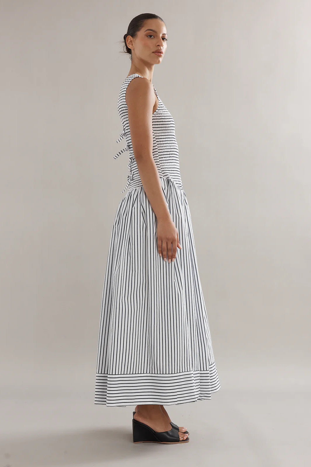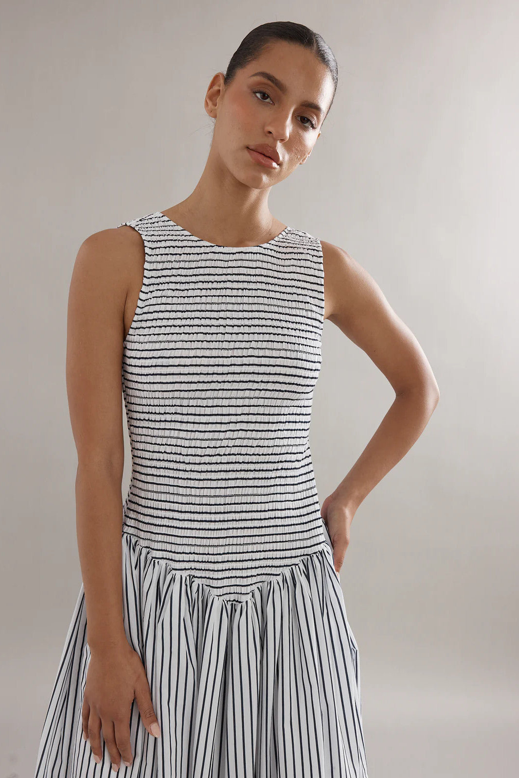 Celine Dress in Navy Stripe by New Zealand label CAITLIN CRISP.