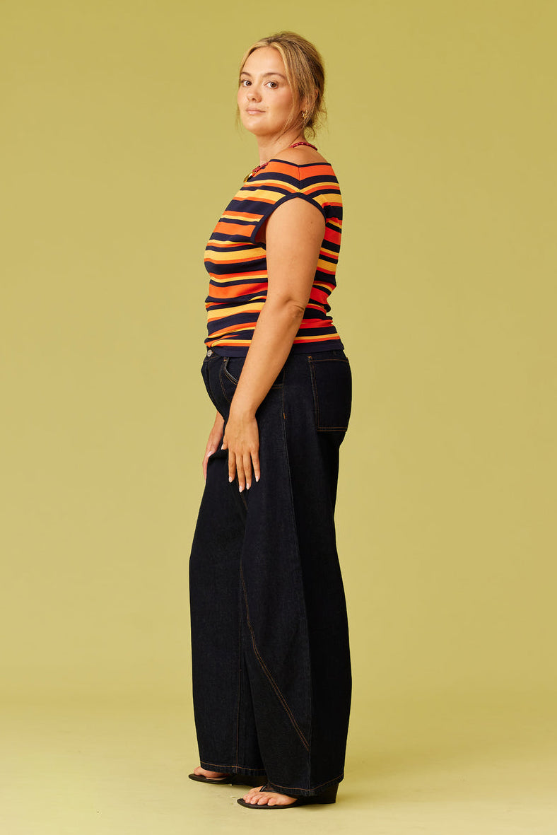 Emma Knit Top in Tangerine Navy Stripe by New Zealand label RUBY.
